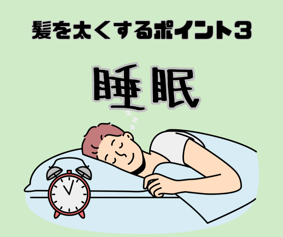 髪の成長は寝ている間に行われるため、十分な睡眠が重要です。成長ホルモンが活性化するのは寝ている間の3時間なので、7~8時間の睡眠を確保しましょう。